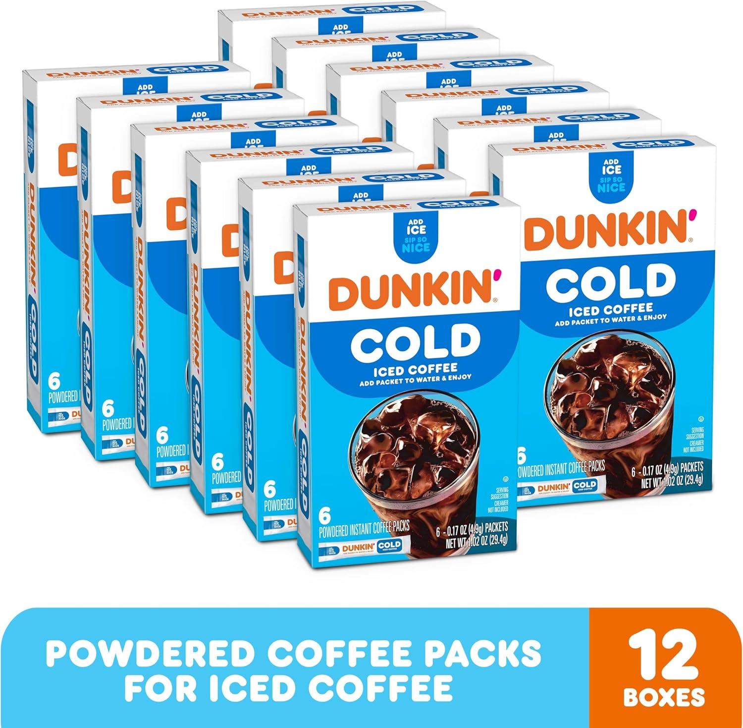 Dunkin’ Cold Iced Coffee, Powdered Instant Coffee Packs, 6 Count (Pack of 12)(Original)