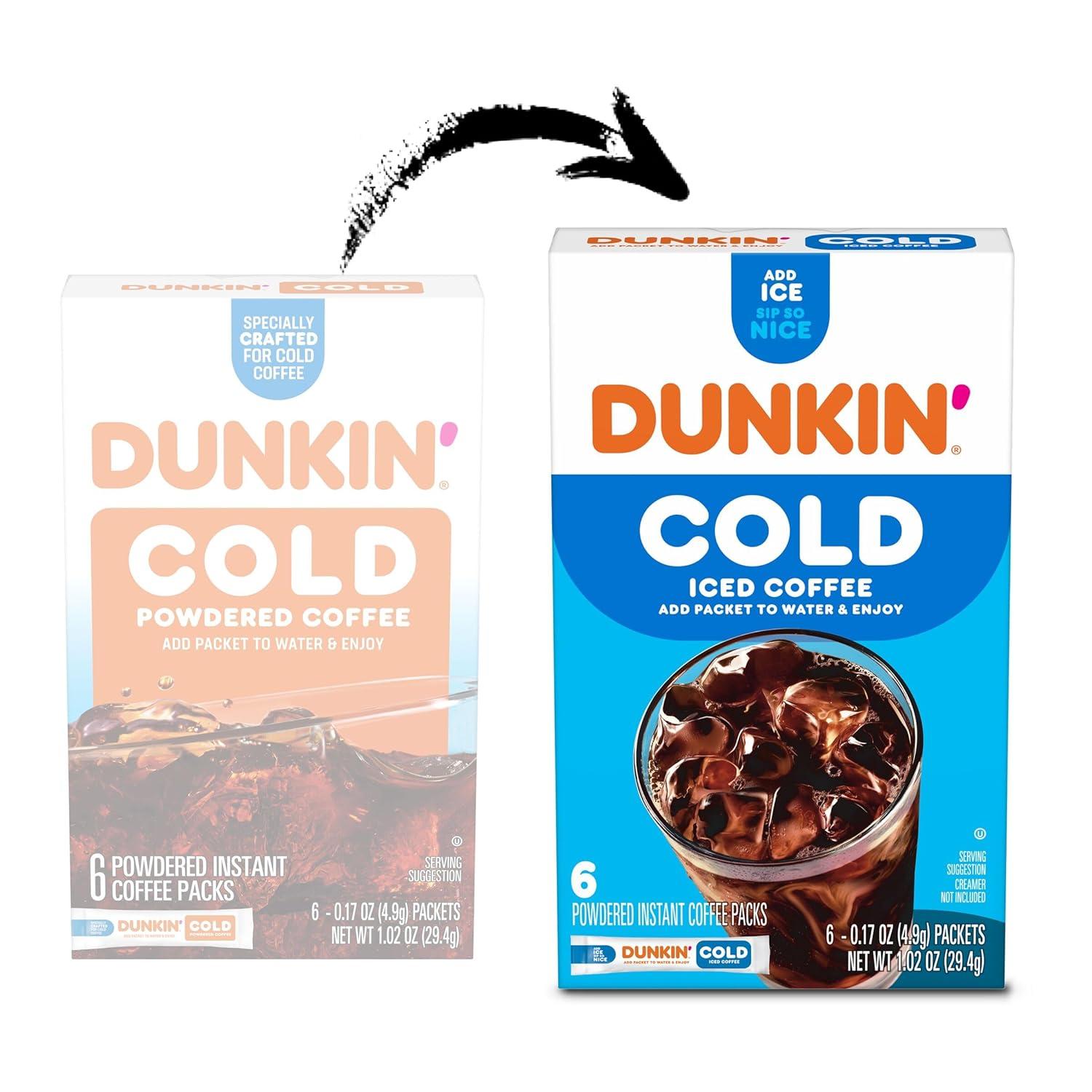 Dunkin’ Cold Iced Coffee, Powdered Instant Coffee Packs, 6 count