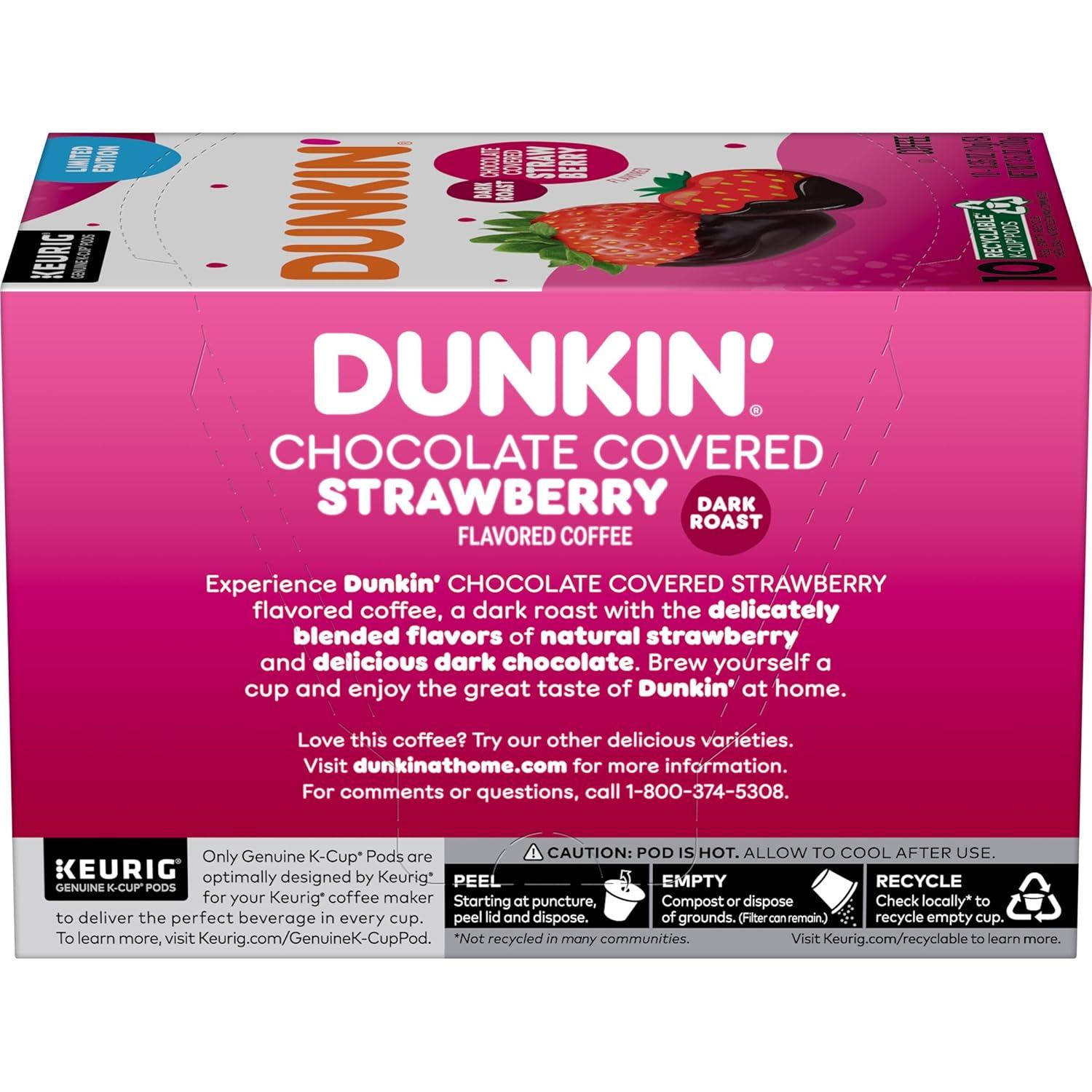 Dunkin’ Midnight Dark Roast Coffee, 60 Keurig K-Cup Pods(Chocolate Covered Strawberry)